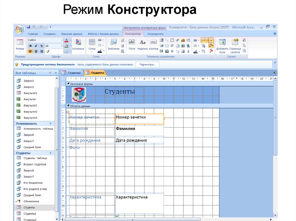 режиме Конструктора.