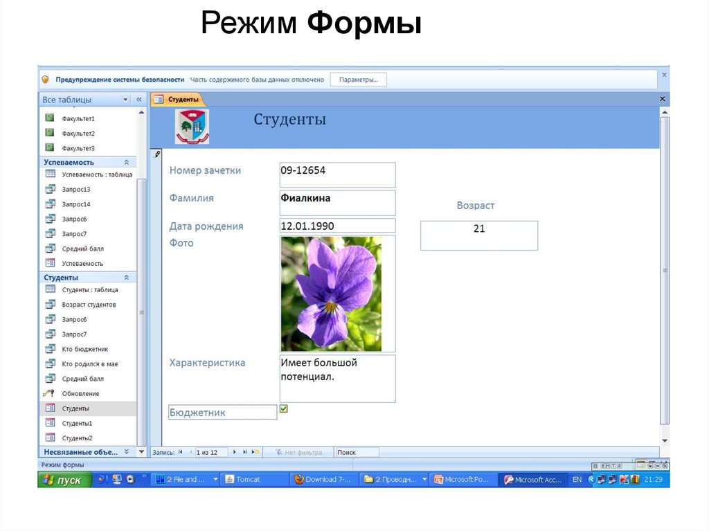 Создание форм и отчетовв СУБД Access