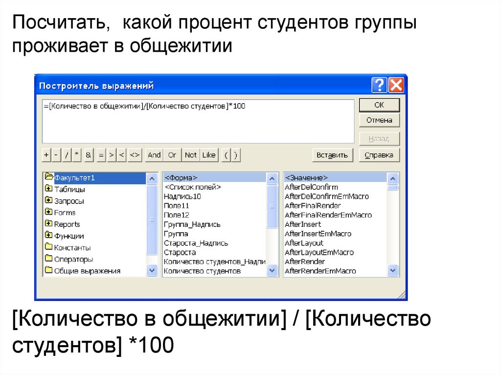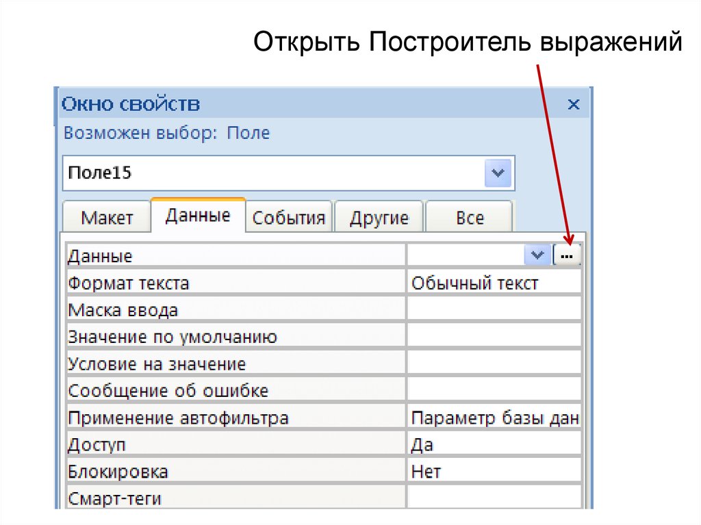 Открыть Построитель выражений21.