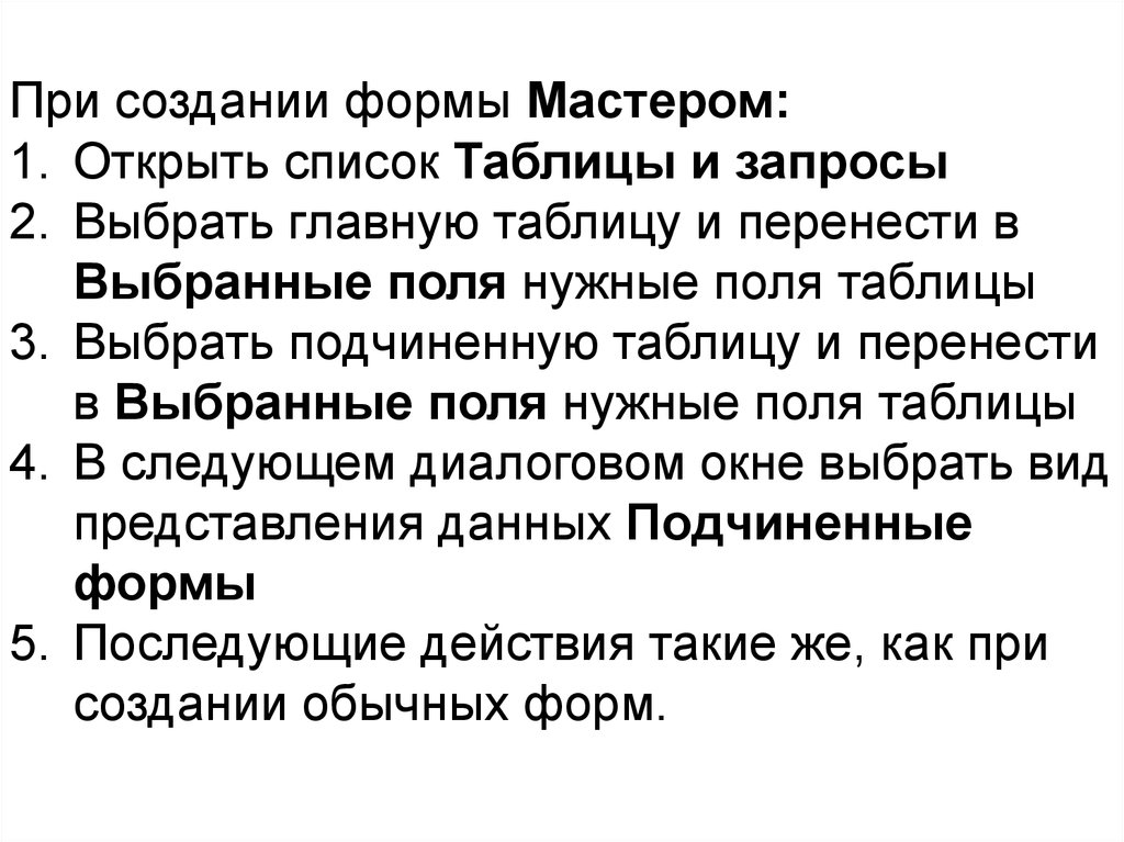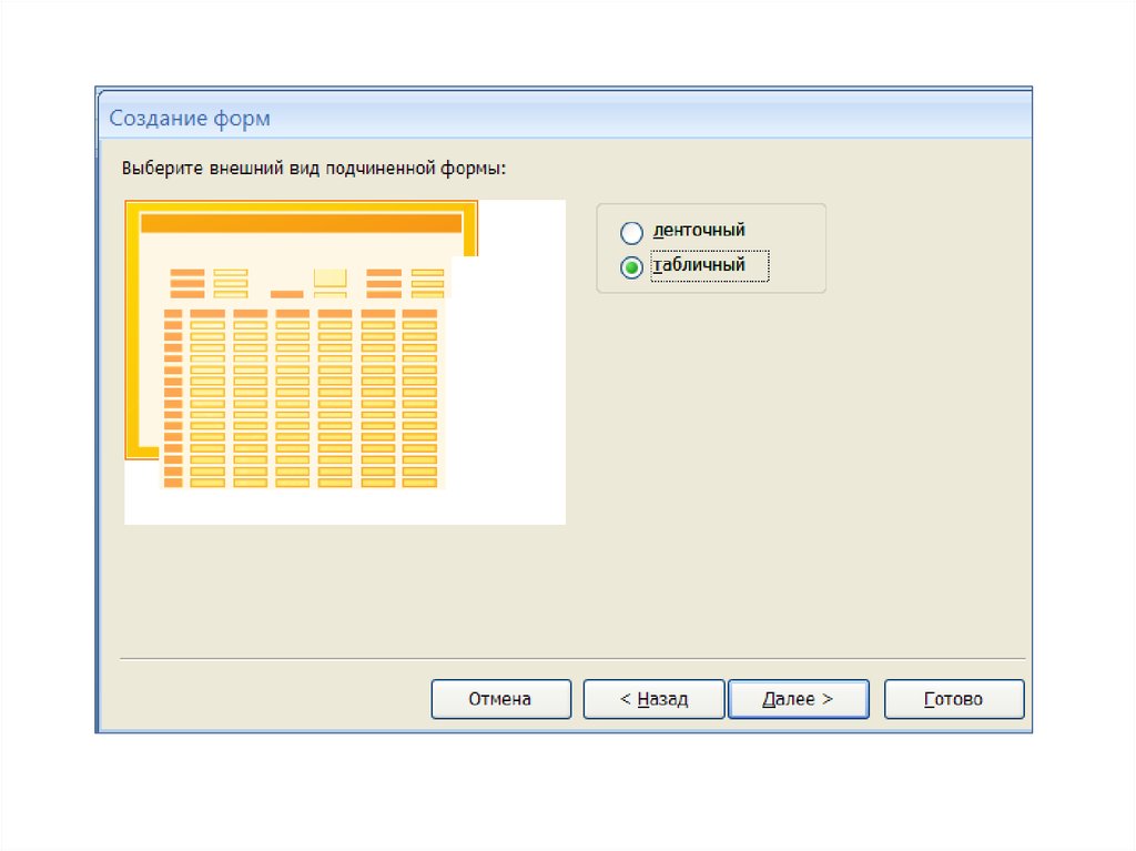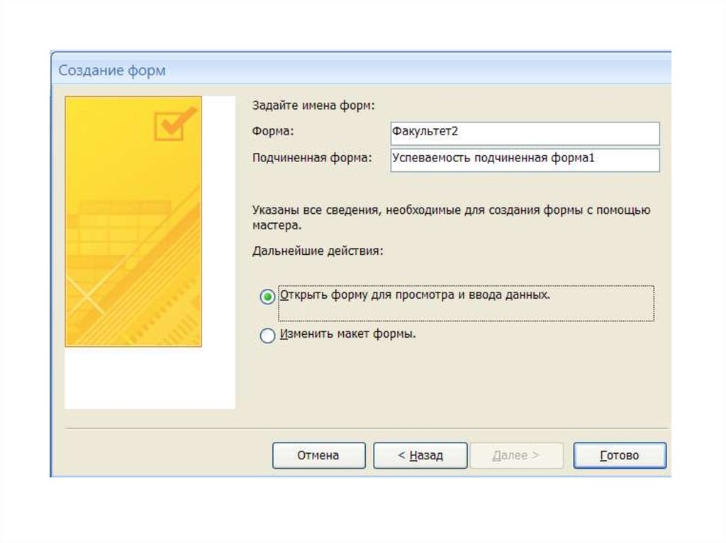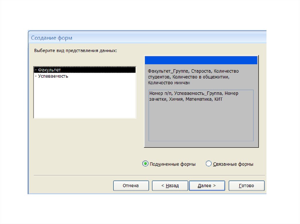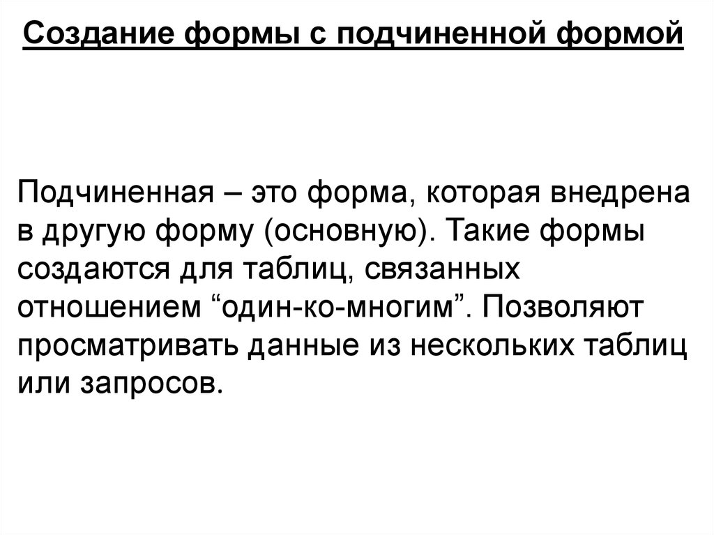 Создание формы с подчиненной формойПодчиненная – это форма, которая внедрена