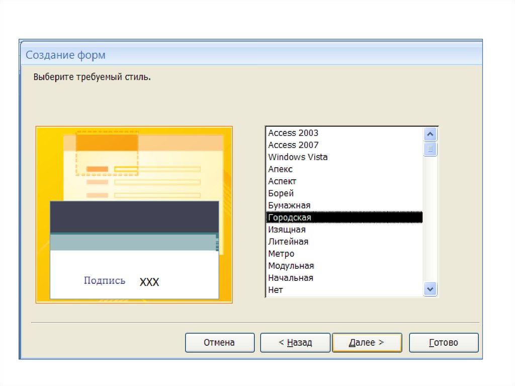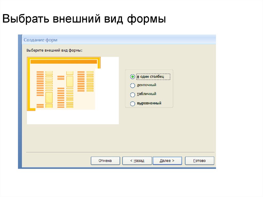 Выбрать внешний вид формы7.