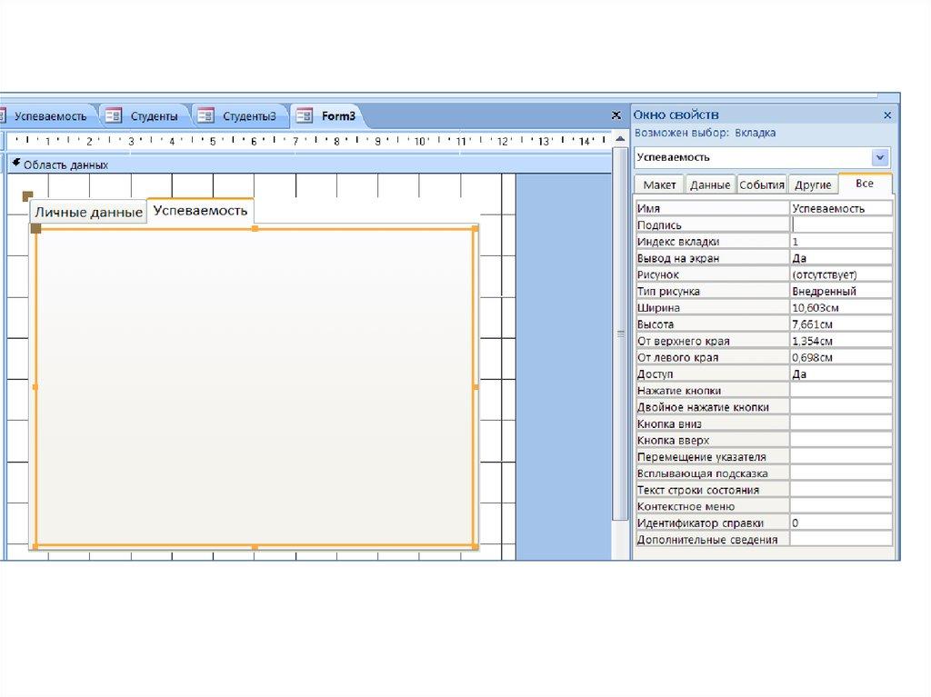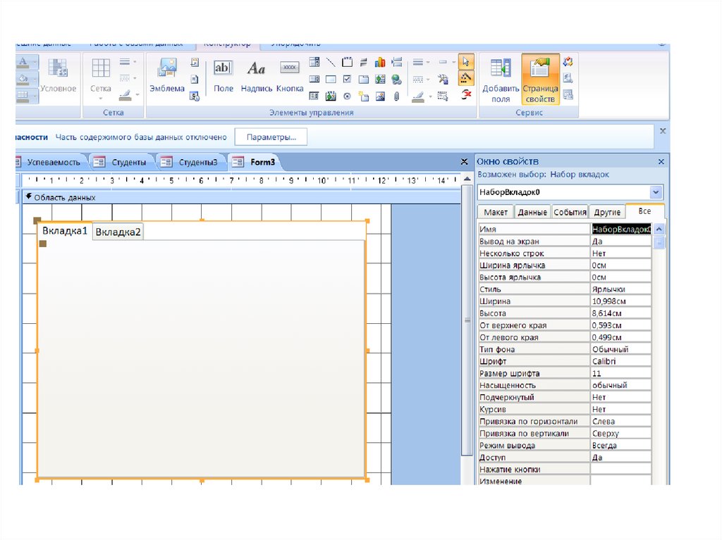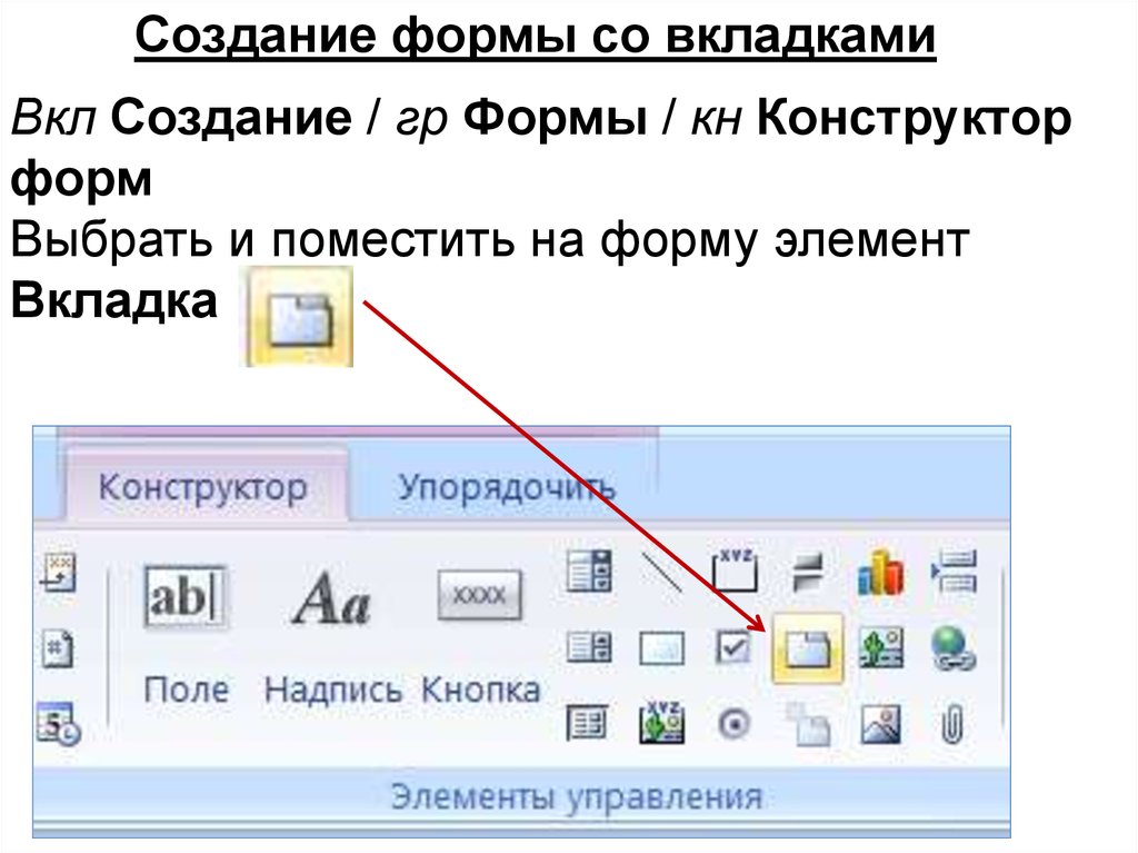 Создание формы со вкладкамиВкл Создание / гр Формы / кн Конструктор
