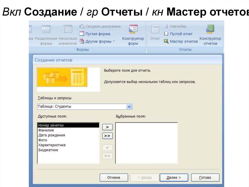 Вкл Создание / гр Отчеты / кн Мастер отчетов55.