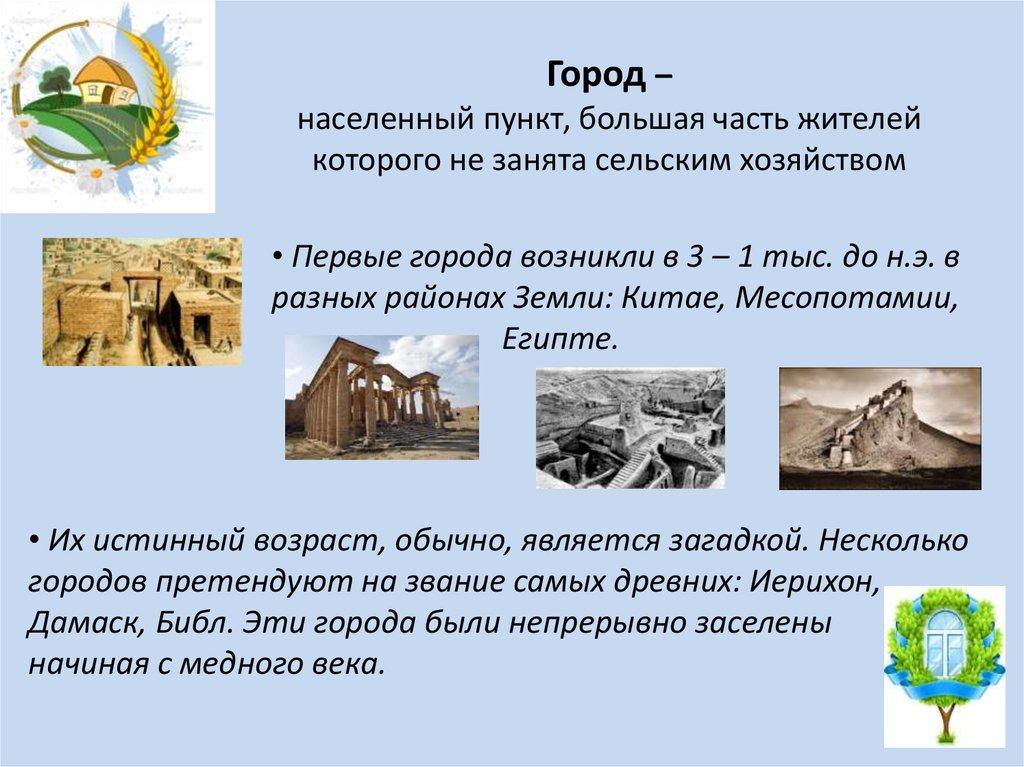 • Первые города возникли в 3 – 1 тыс. до н.э. в