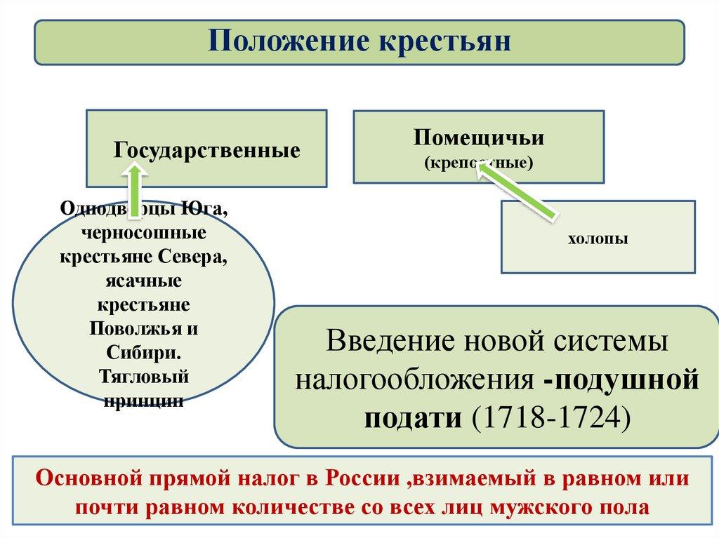 Положение крестьян1718 – 1724 гг. – проведена перепись населения (ревизия)