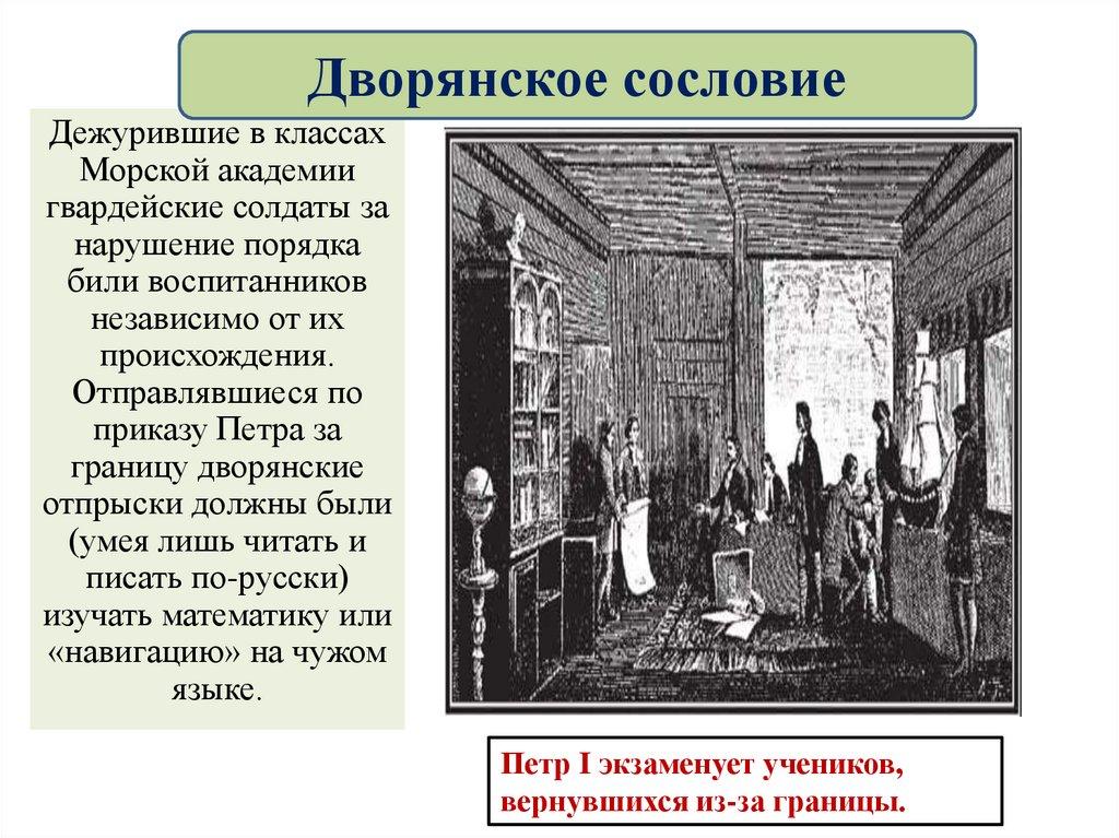 При Петре I молодыедворяне, как и прежде,