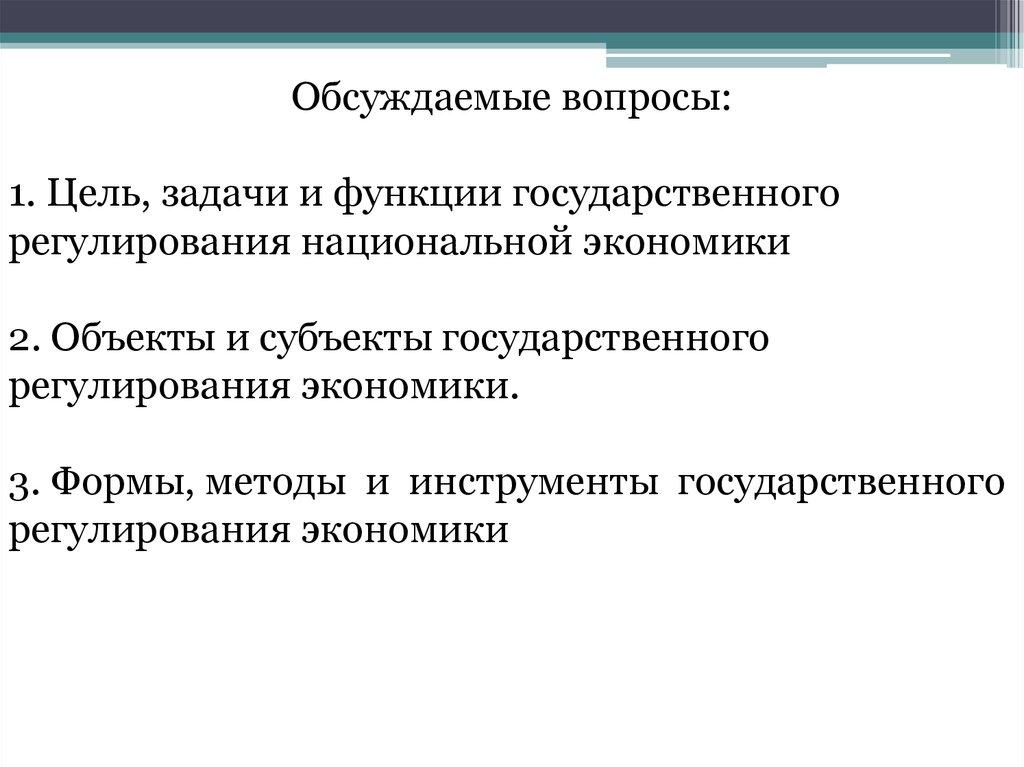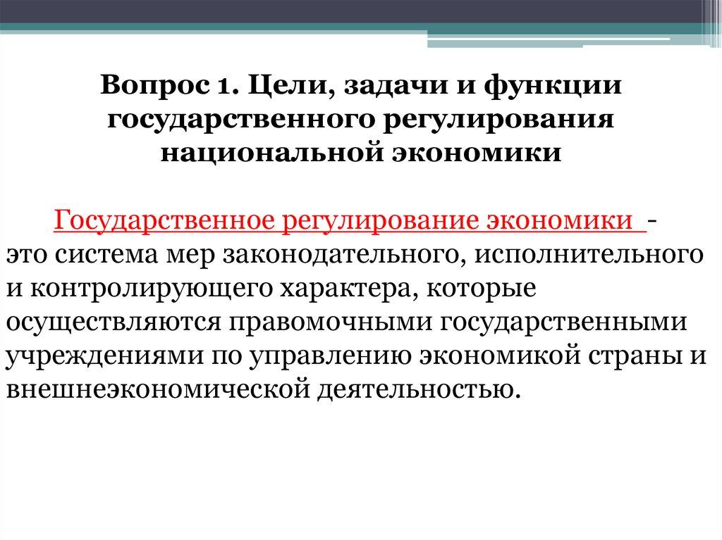 Вопрос 1. Цели, задачи и функциигосударственного регулирования