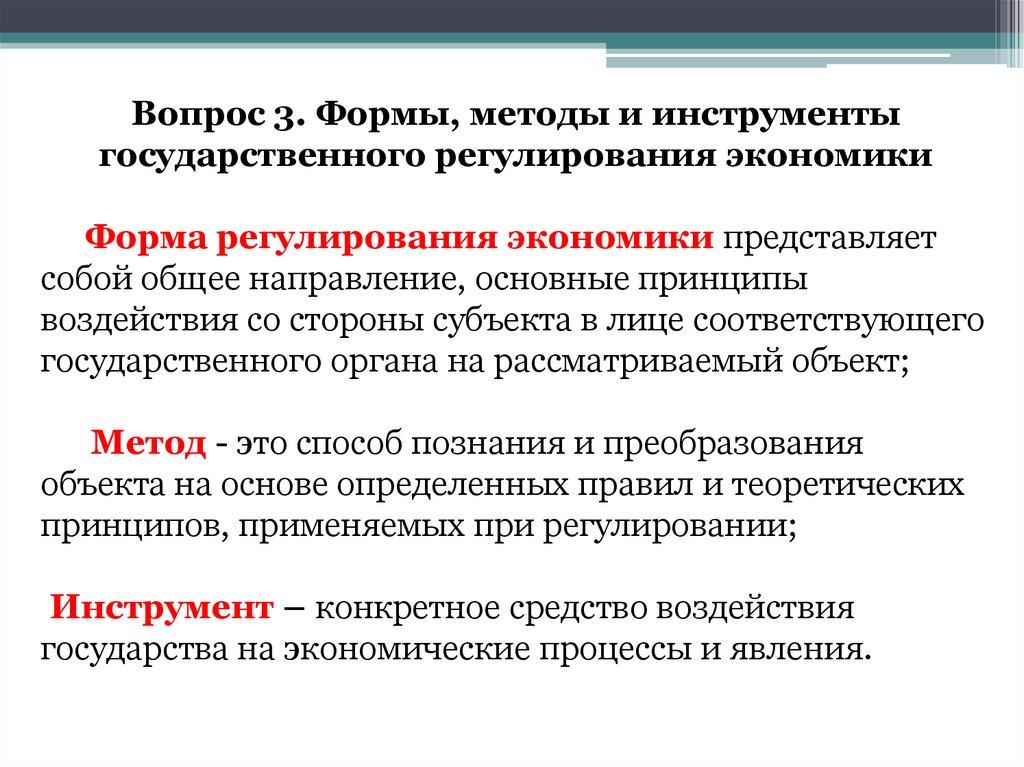 Вопрос 3. Формы, методы и инструментыгосударственного регулирования экономики
