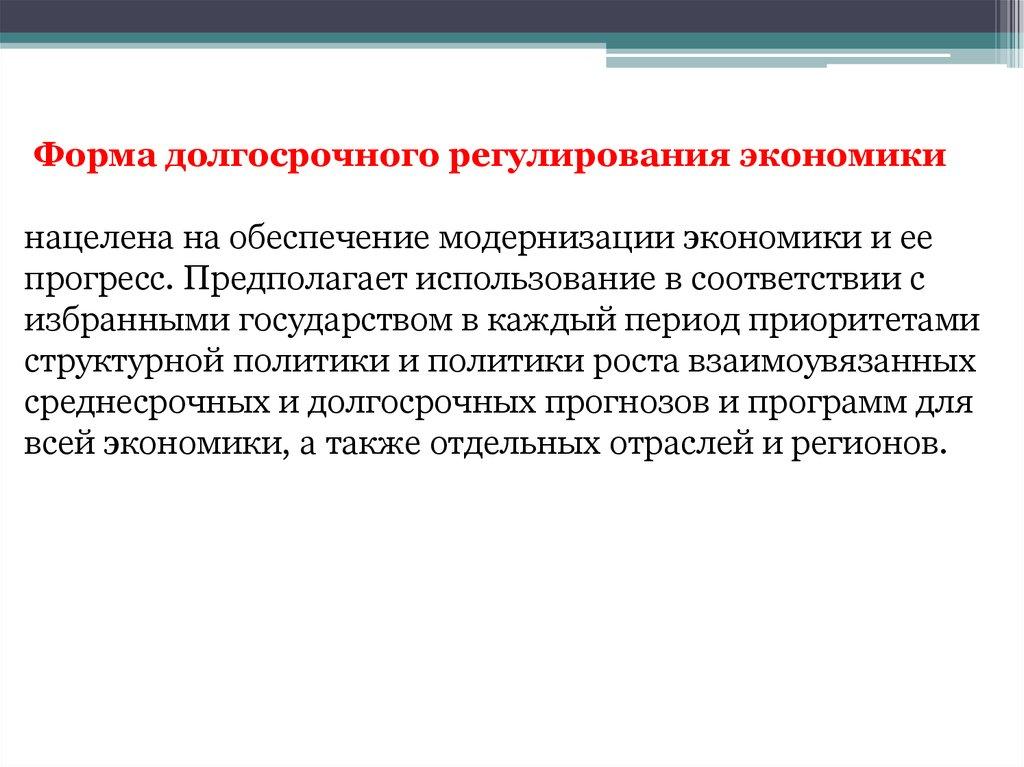 Форма долгосрочного регулирования экономикинацелена на обеспечение модернизации экономики и ее