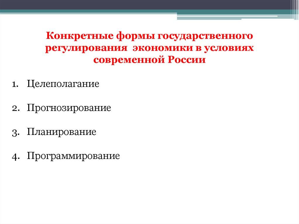 Конкретные формы государственногорегулирования экономики в условиях