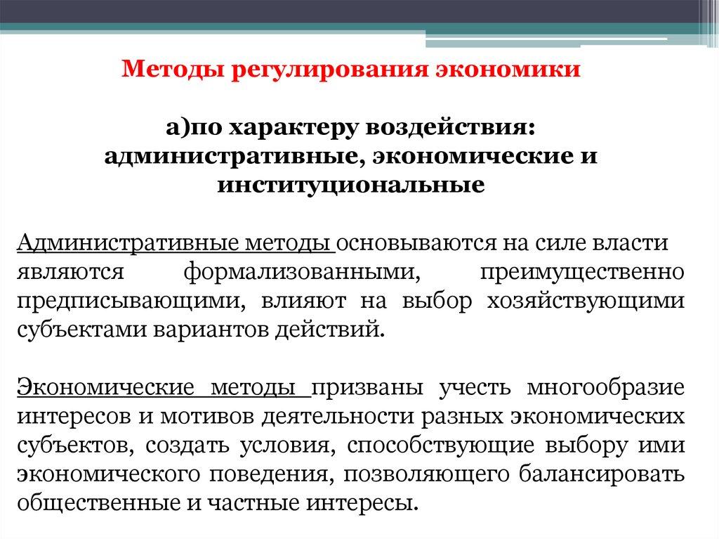 Методы регулирования экономикиа)по характеру воздействия: