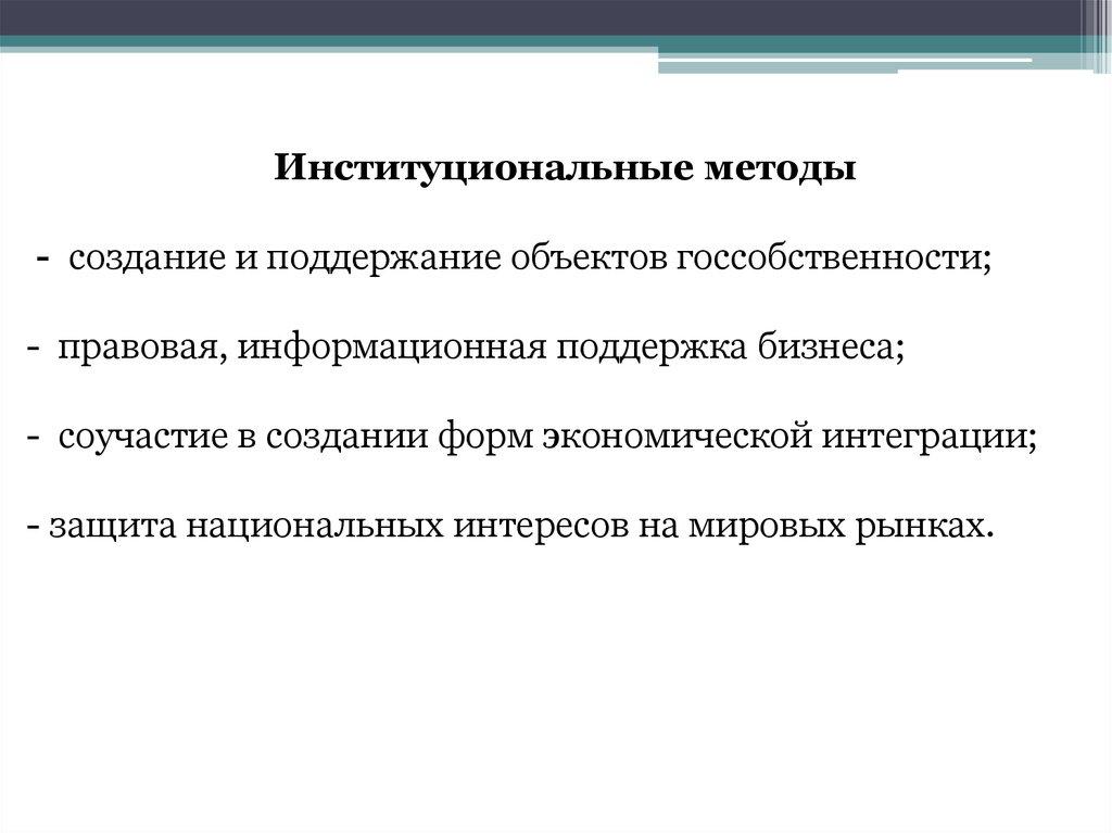 Институциональные методы- создание и поддержание объектов госсобственности;