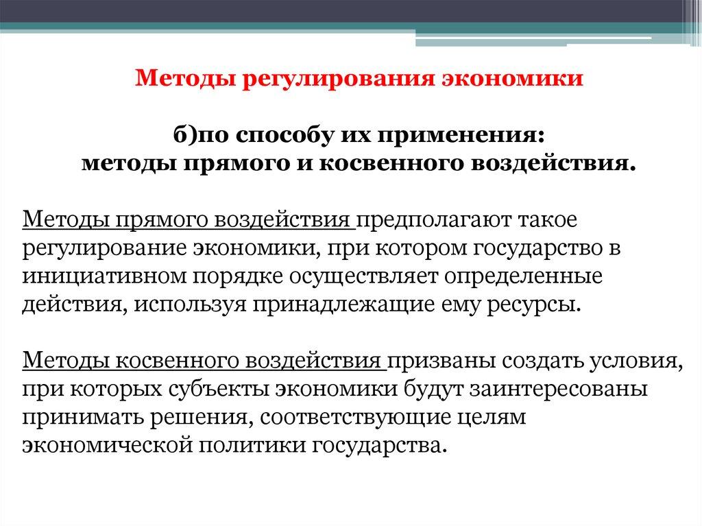 Методы регулирования экономикиб)по способу их применения: