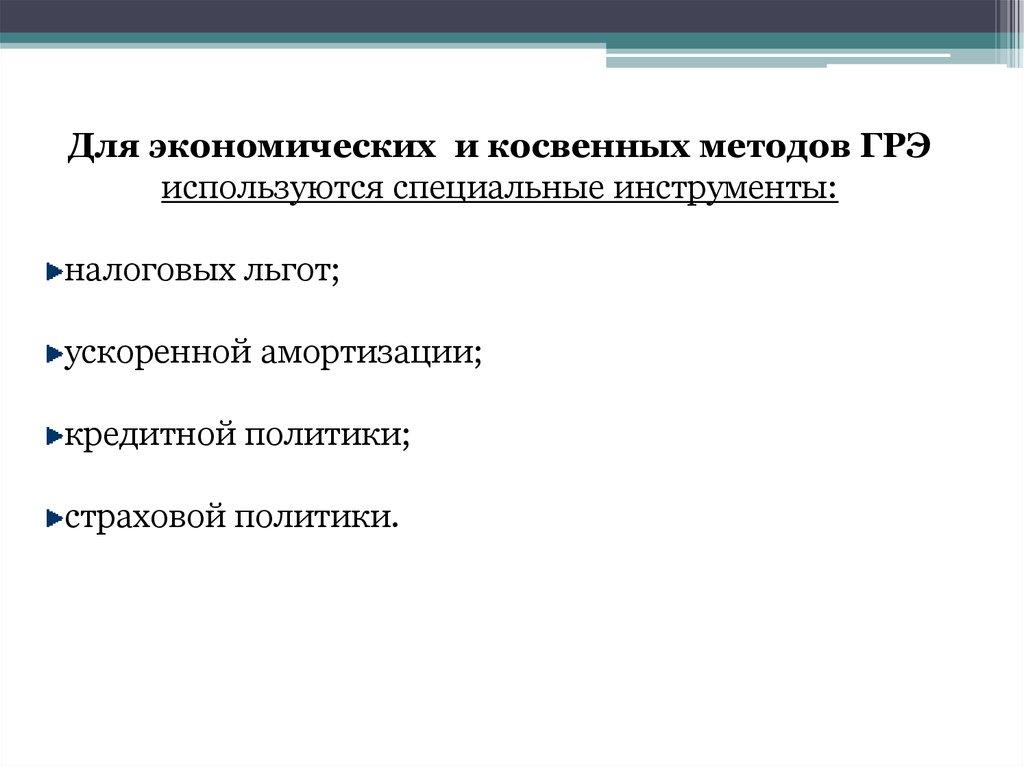 Для экономических и косвенных методов ГРЭиспользуются специальные инструменты: