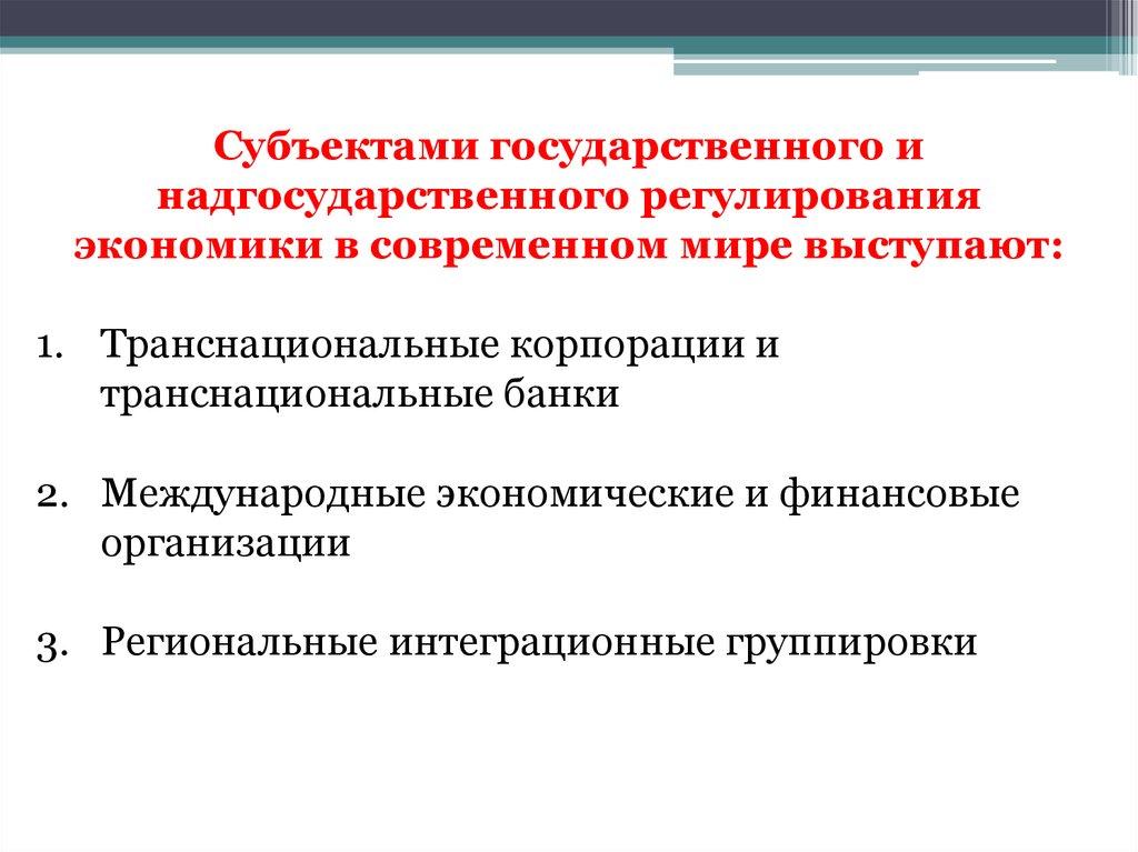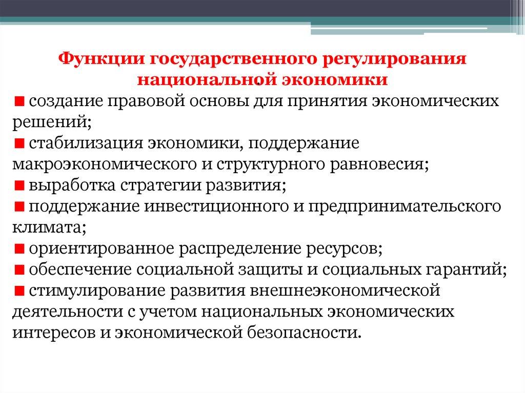 регулирования национальной экономики