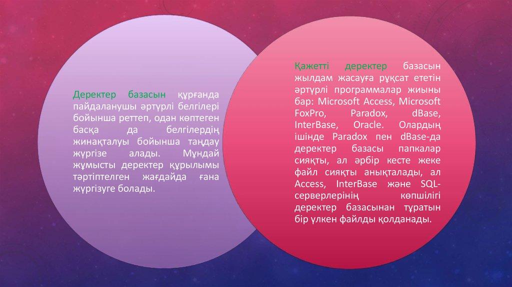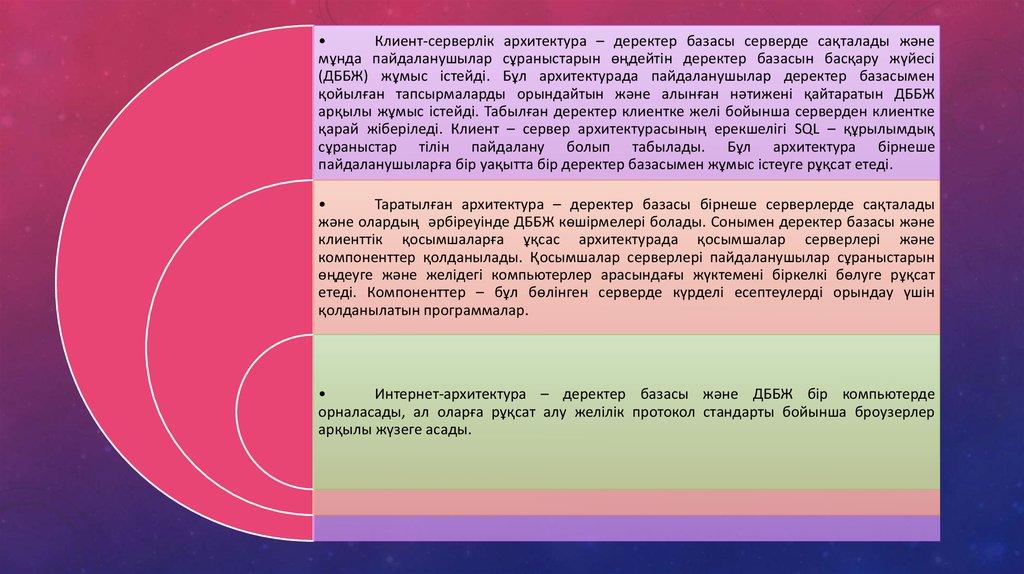 • 1.Деректер базасы• 2.Деректер базасының архитектурасы