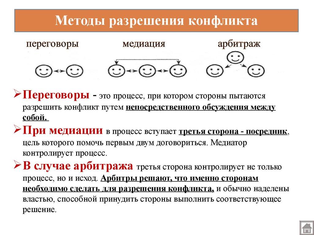 Методы разрешения конфликтаПереговоры - это процесс, при котором стороны пытаются