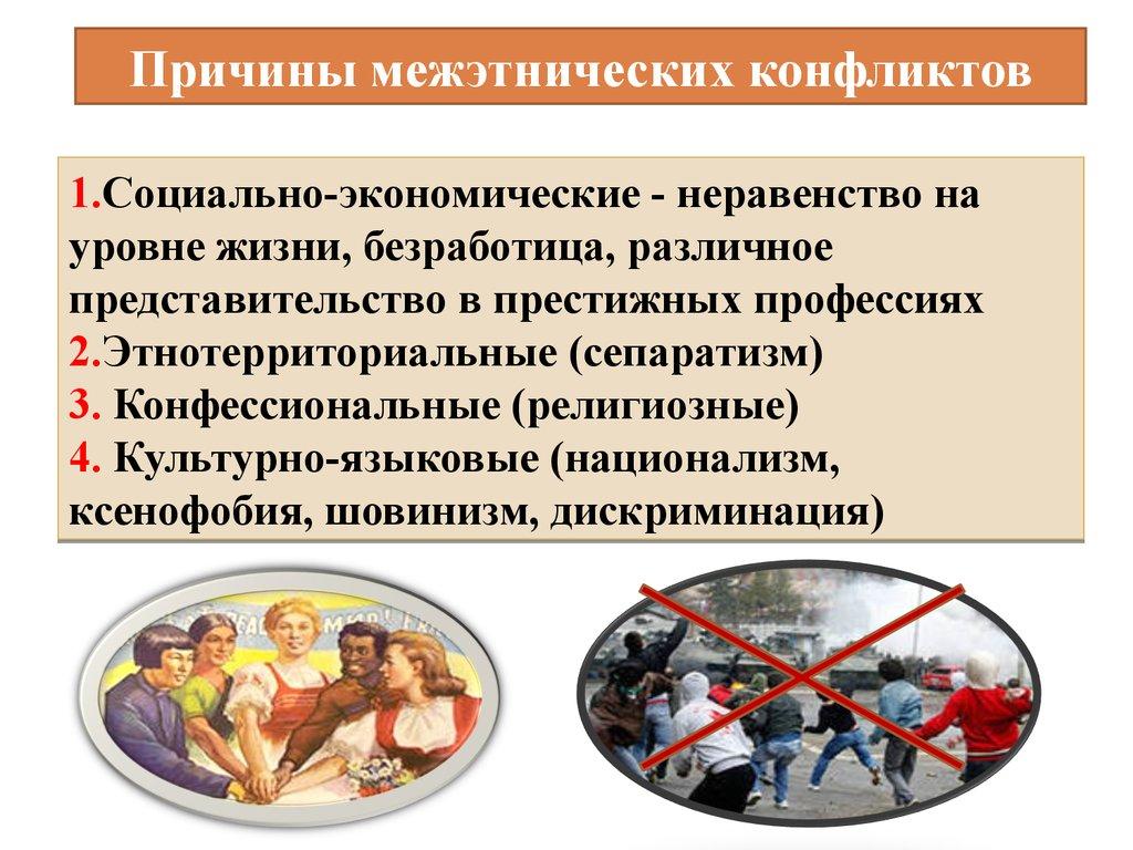 Причины межэтнических конфликтов1.Социально-экономические - неравенство на