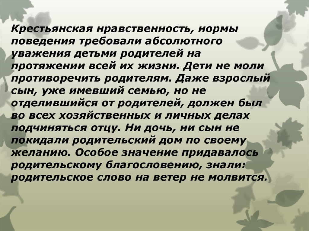 Крестьянская нравственность, нормыповедения требовали абсолютного