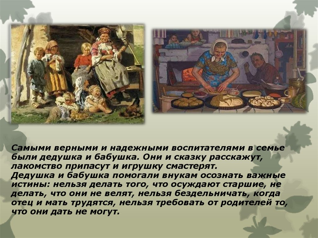 Самыми верными и надежными воспитателями в семьебыли дедушка и бабушка. Они и сказку расскажут,
