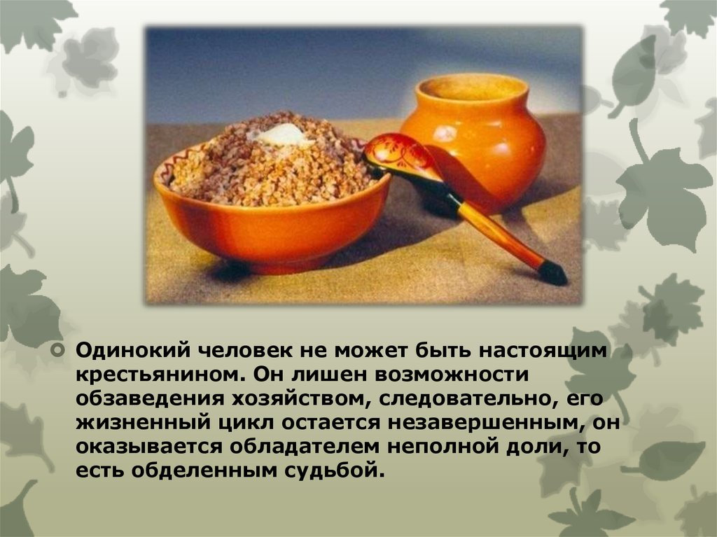 Одинокий человек не может быть настоящимкрестьянином. Он лишен возможности