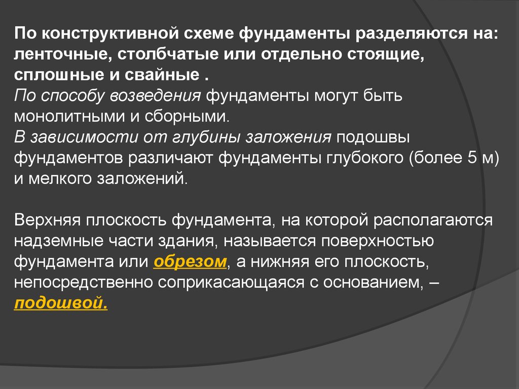 Все существующие на данный моментфундаменты могут быть подразделены
