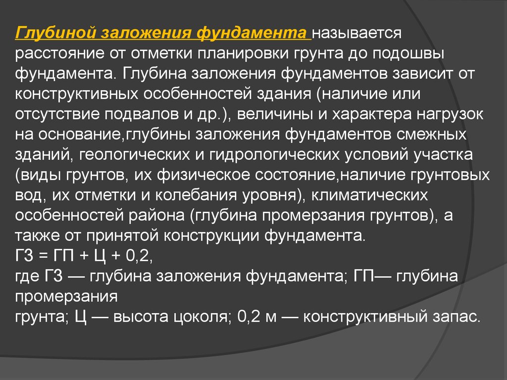 глубину заложения фундамента, которая должна быть