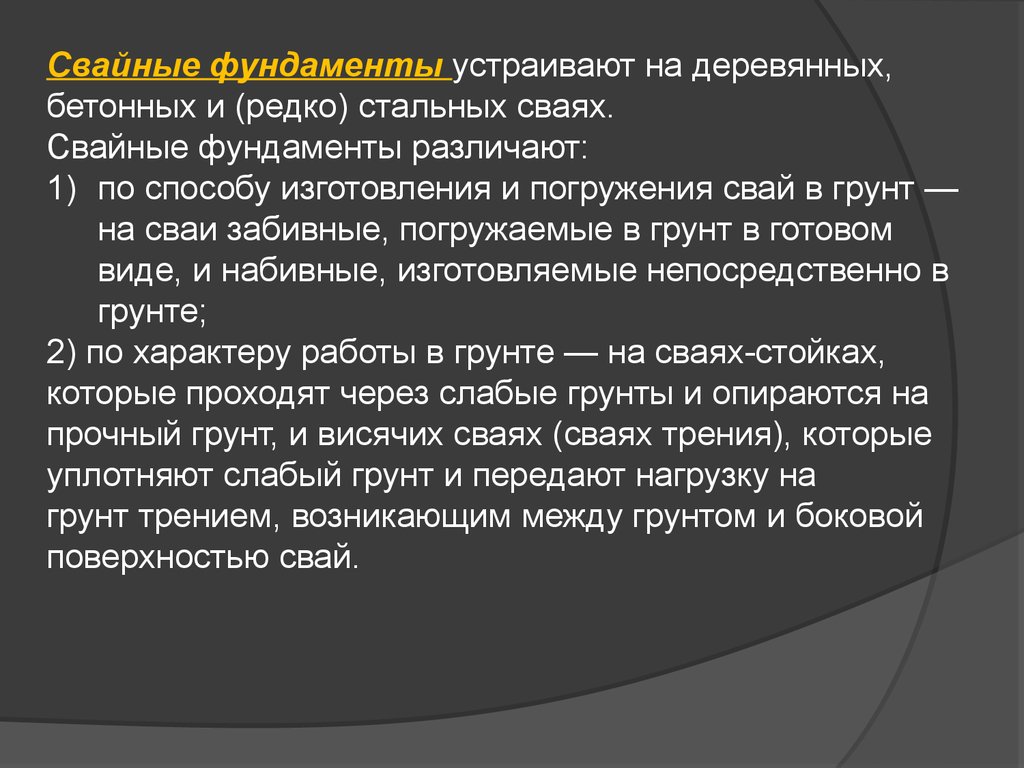 прочный грунт, и висячих сваях (сваях трения), которые