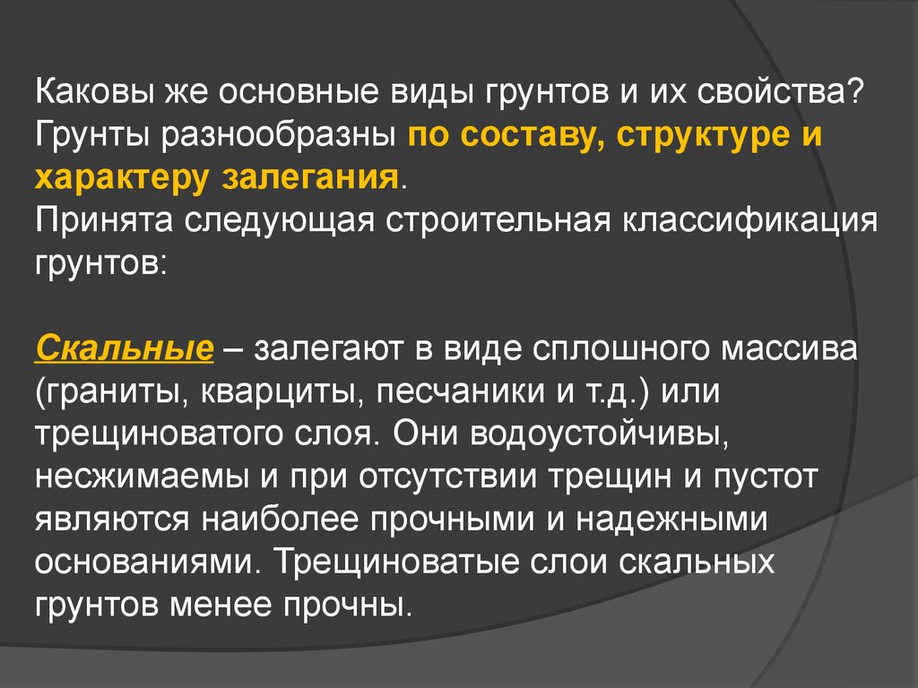 Каковы же основные виды грунтов и их свойства?Грунты разнообразны по составу, структуре и