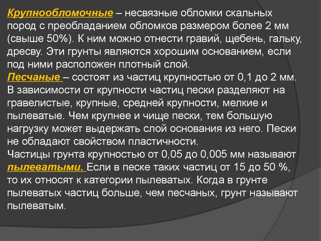 (свыше 50%). К ним можно отнести гравий, щебень, гальку,
