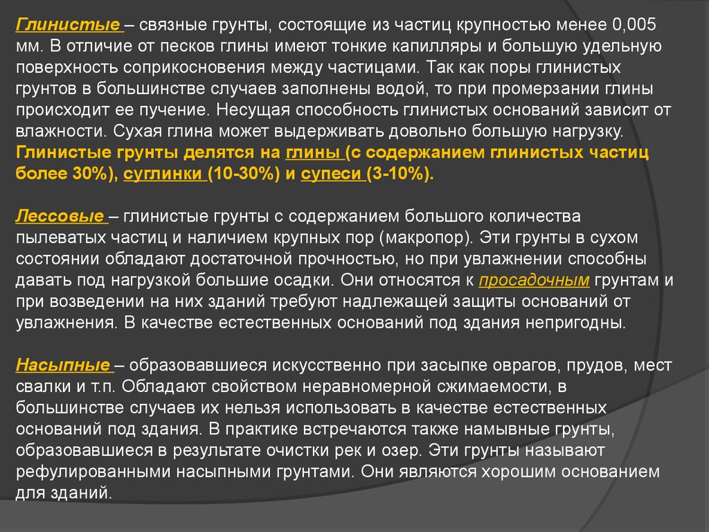 свалки и т.п. Обладают свойством неравномерной сжимаемости, в