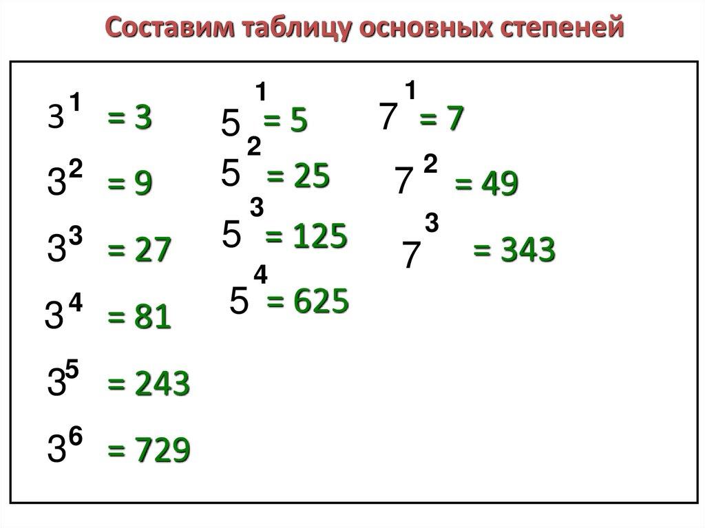 Составим таблицу основных степеней3