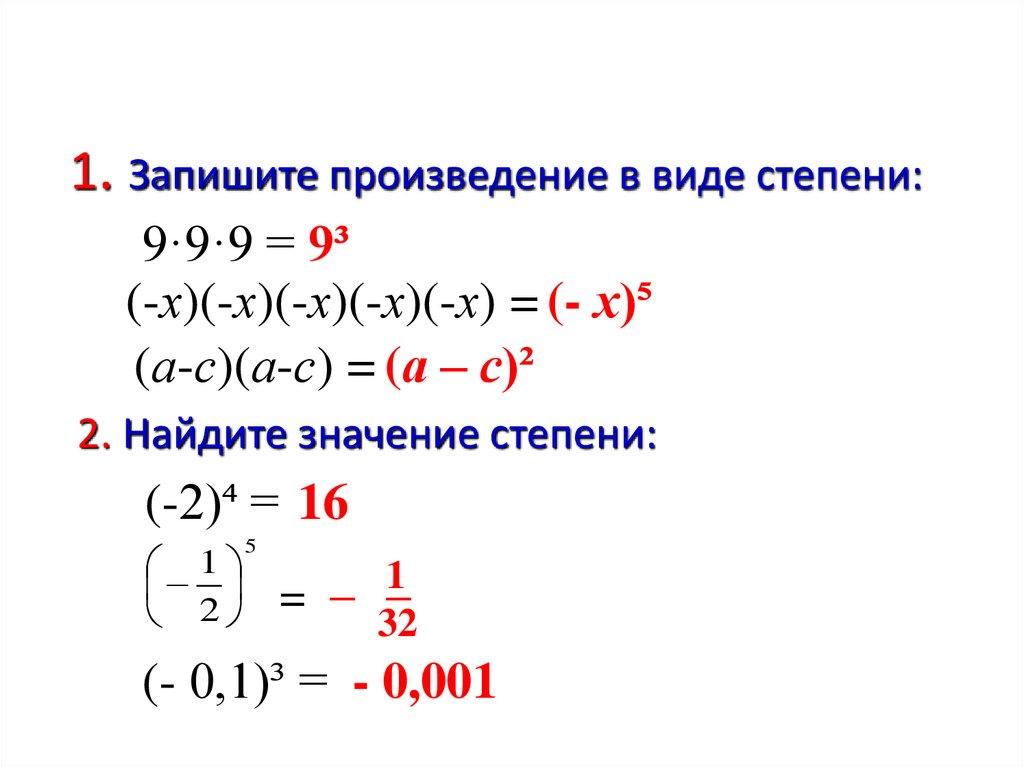 2. Найдите значение степени: