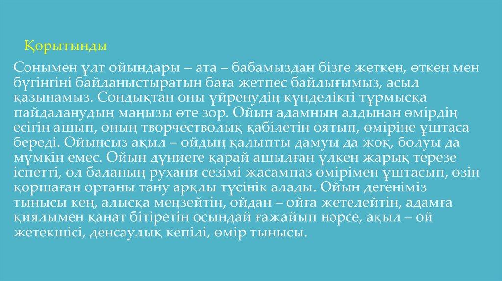 ҚорытындыСонымен ұлт ойындары – ата – бабамыздан бізге жеткен, өткен мен