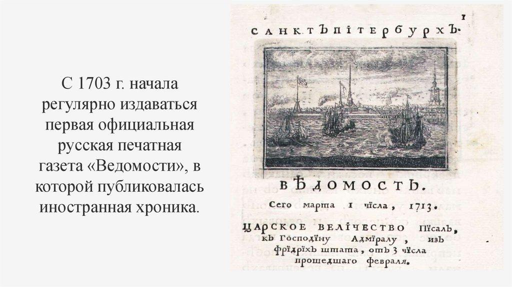 Выдающееся значение имелвыход в свет в 1703 г.