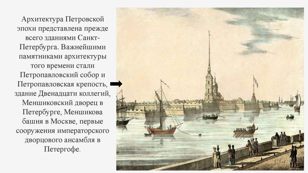 Архитектура Петровскойэпохи представлена прежде