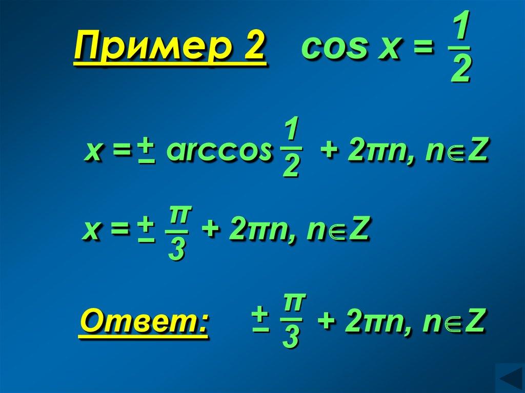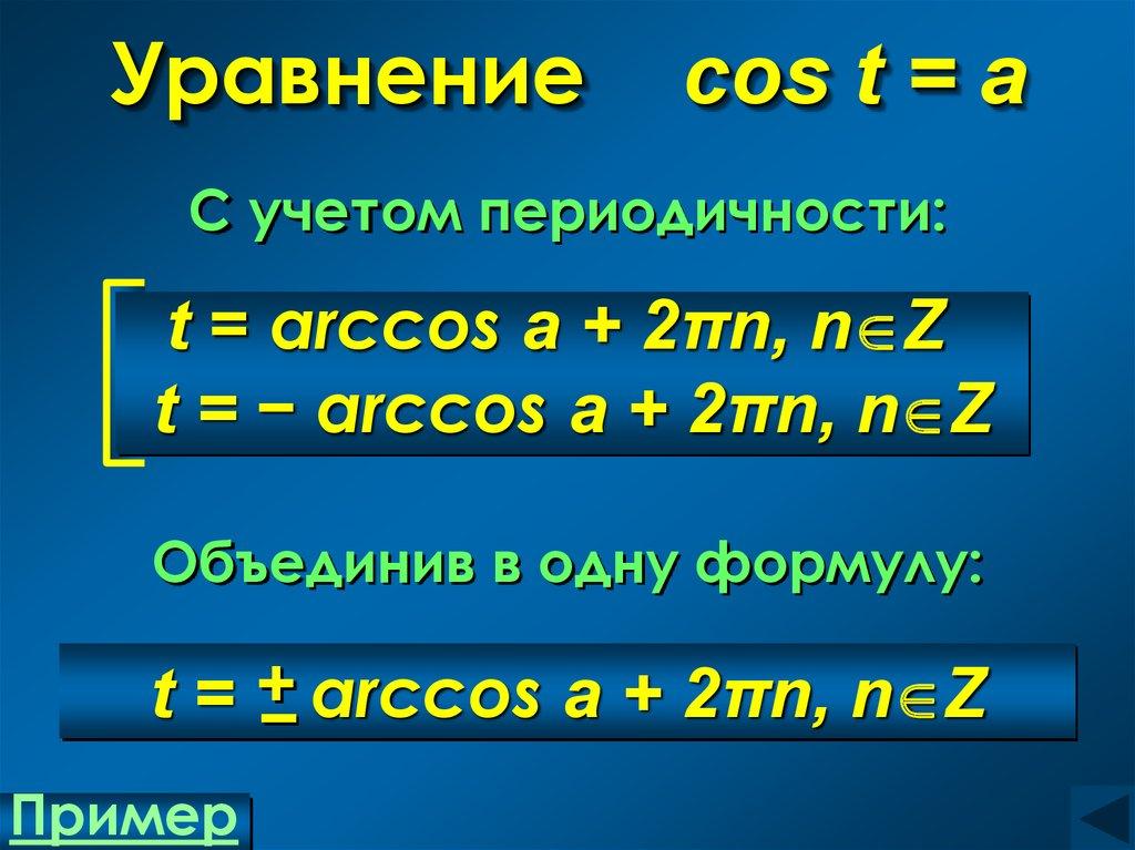 Арккосинусом числа а называетсятакой угол из промежутка [ 0; π],