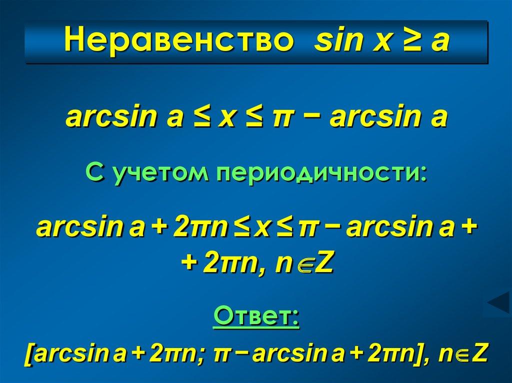 аrcsin(- a) = -arcsina, а [− 1; 1]