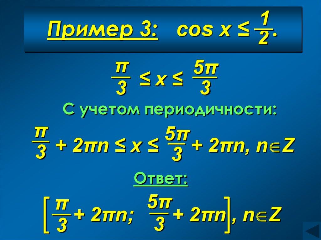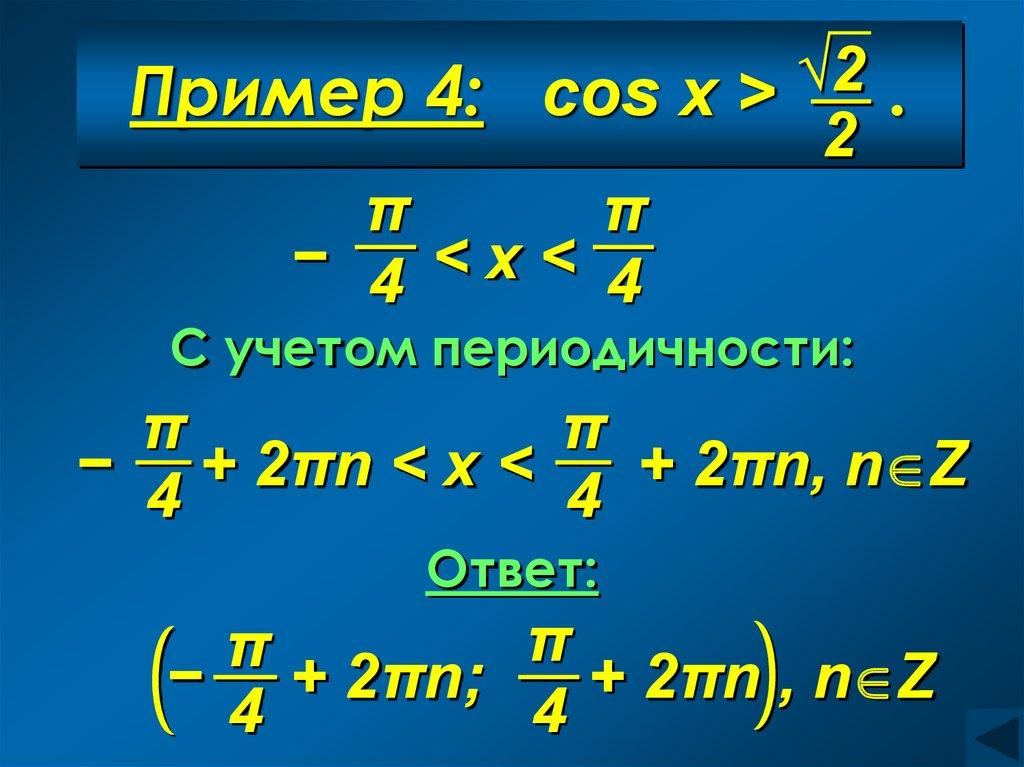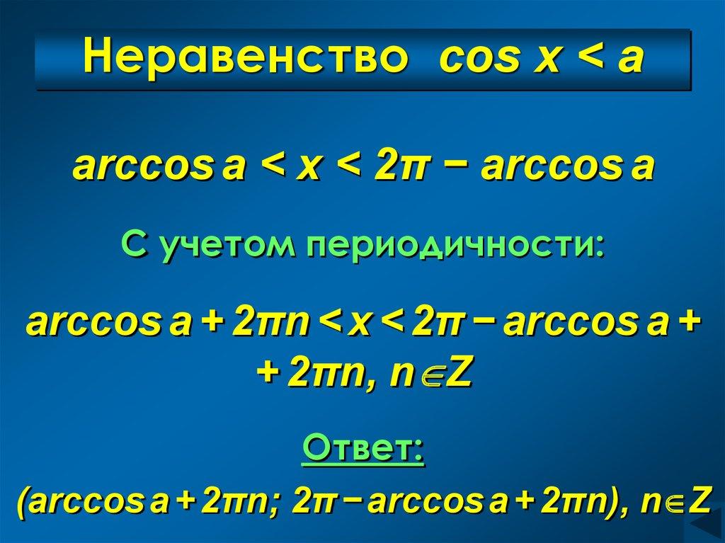 Неравенство cos x < aarccos a < x < 2π − arccos a