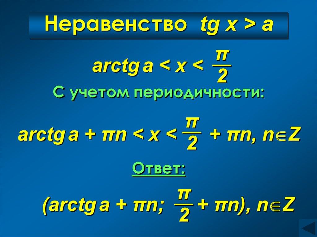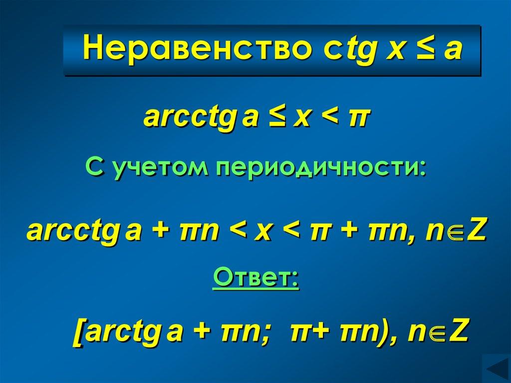 Неравенство ctg x ≤ aarcctg a ≤ x < π