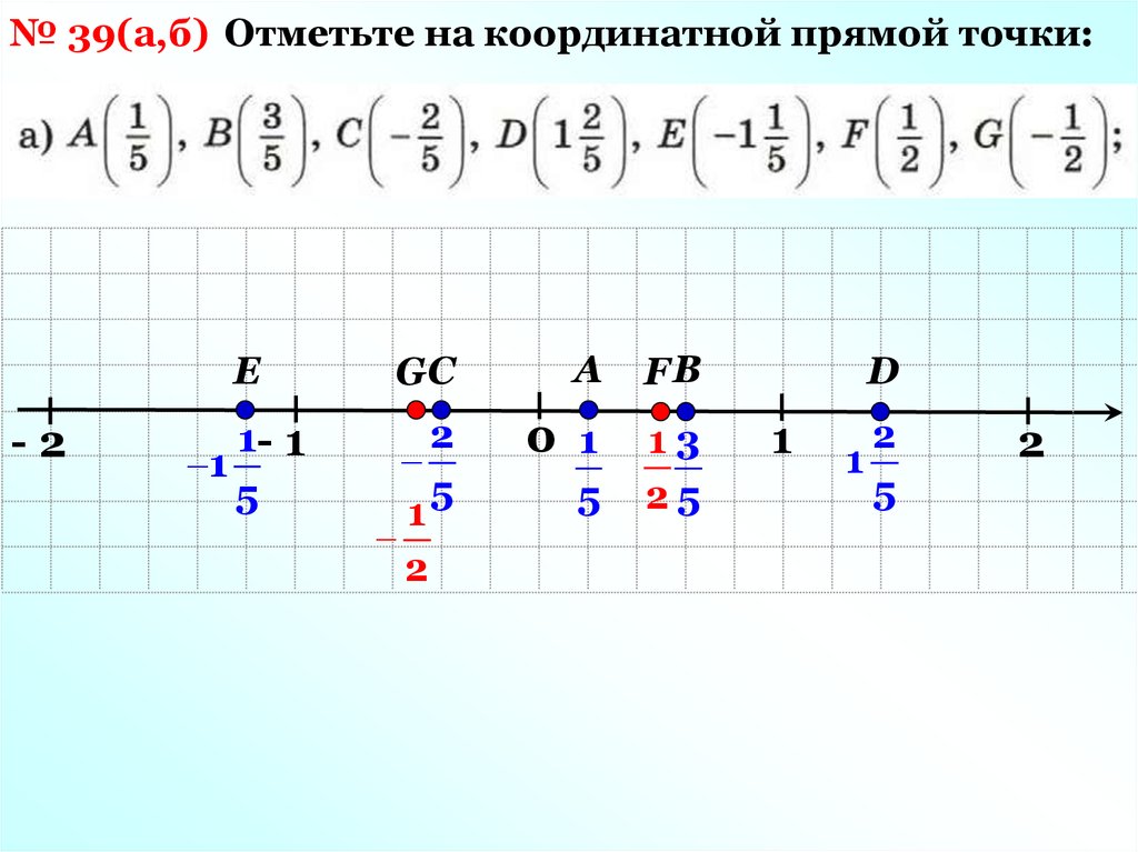 № 39(а,б) Отметьте на координатной прямой точки:-2