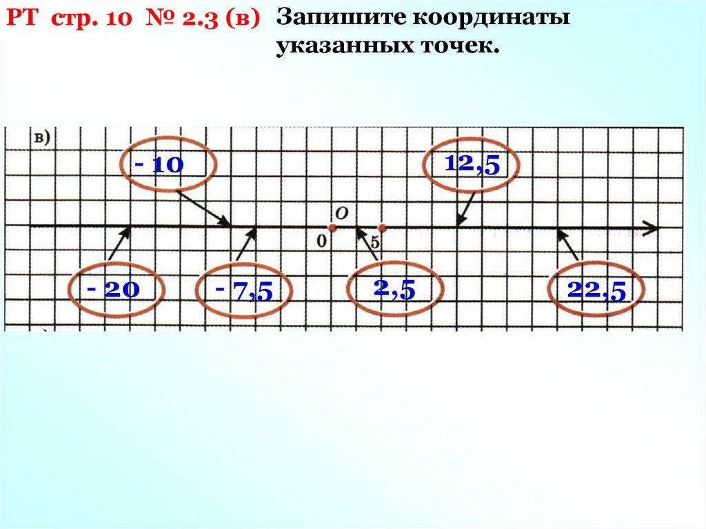 РТ стр. 10 № 2.3 (в) Запишите координатыуказанных точек.
