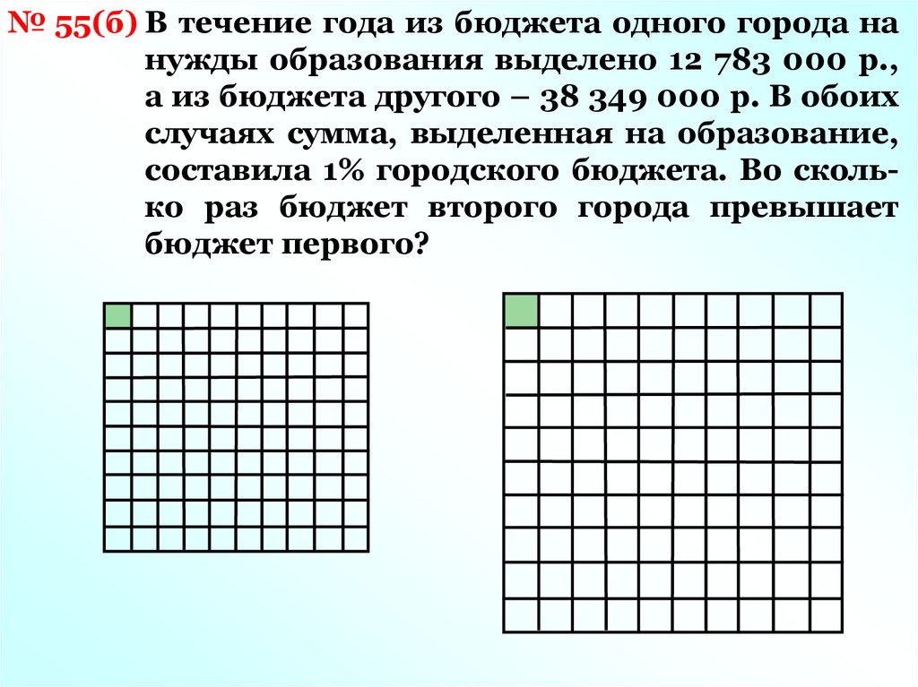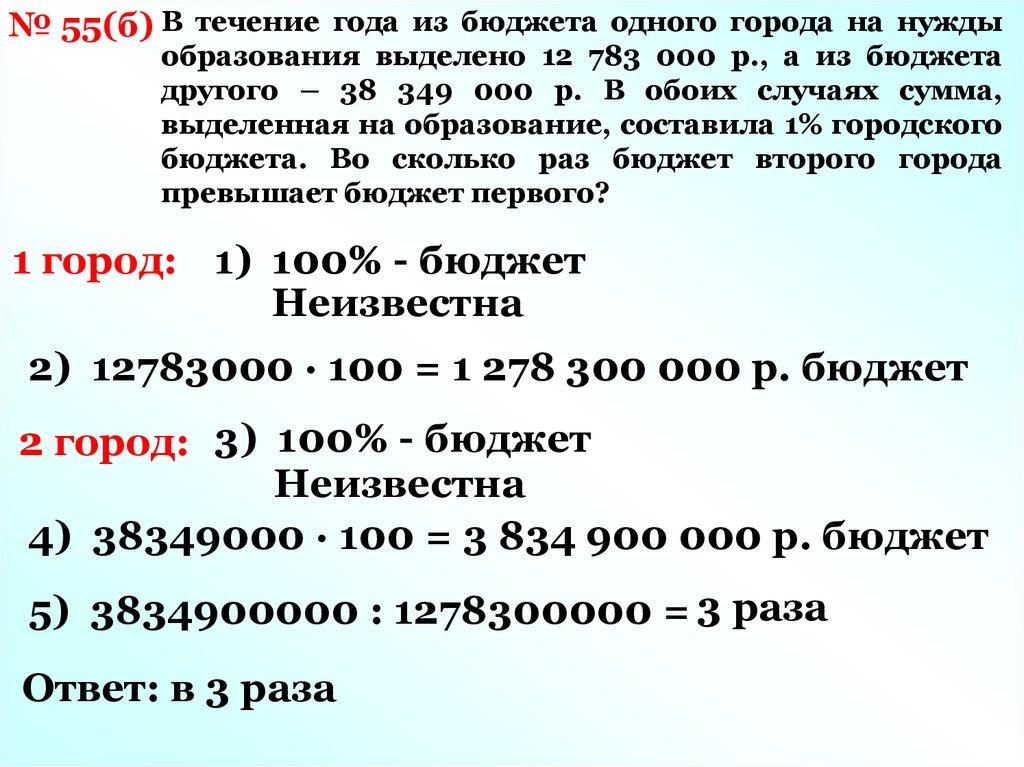 № 55(б) В течение года из бюджета одного города на нуждыобразования выделено 12 783 000 р., а из бюджета