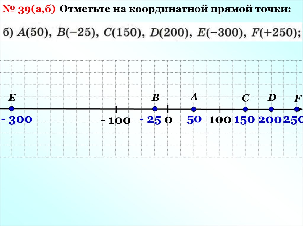 № 39(а,б) Отметьте на координатной прямой точки:Е