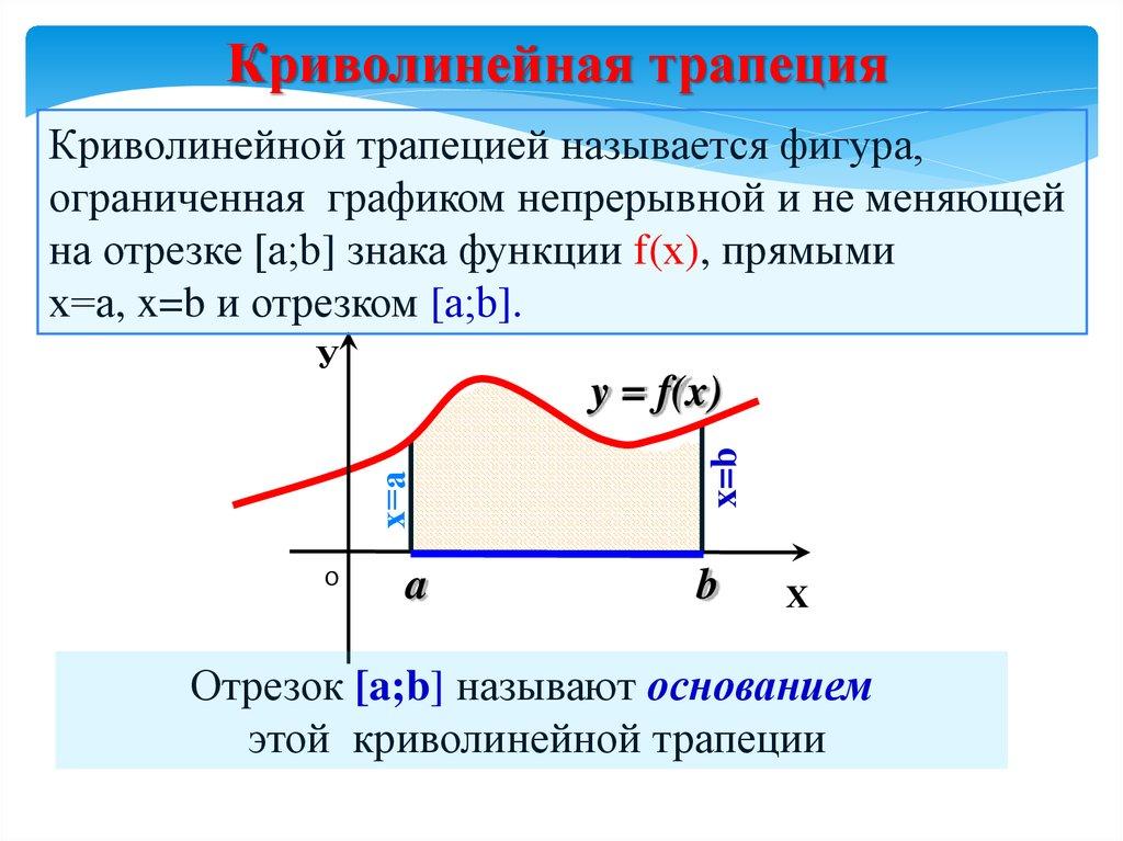 Криволинейная трапецияКриволинейной трапецией называется фигура,