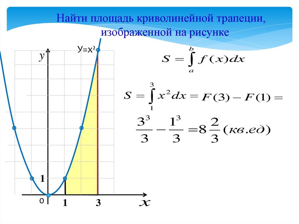 Найти площадь криволинейной трапеции,изображенной на рисунке