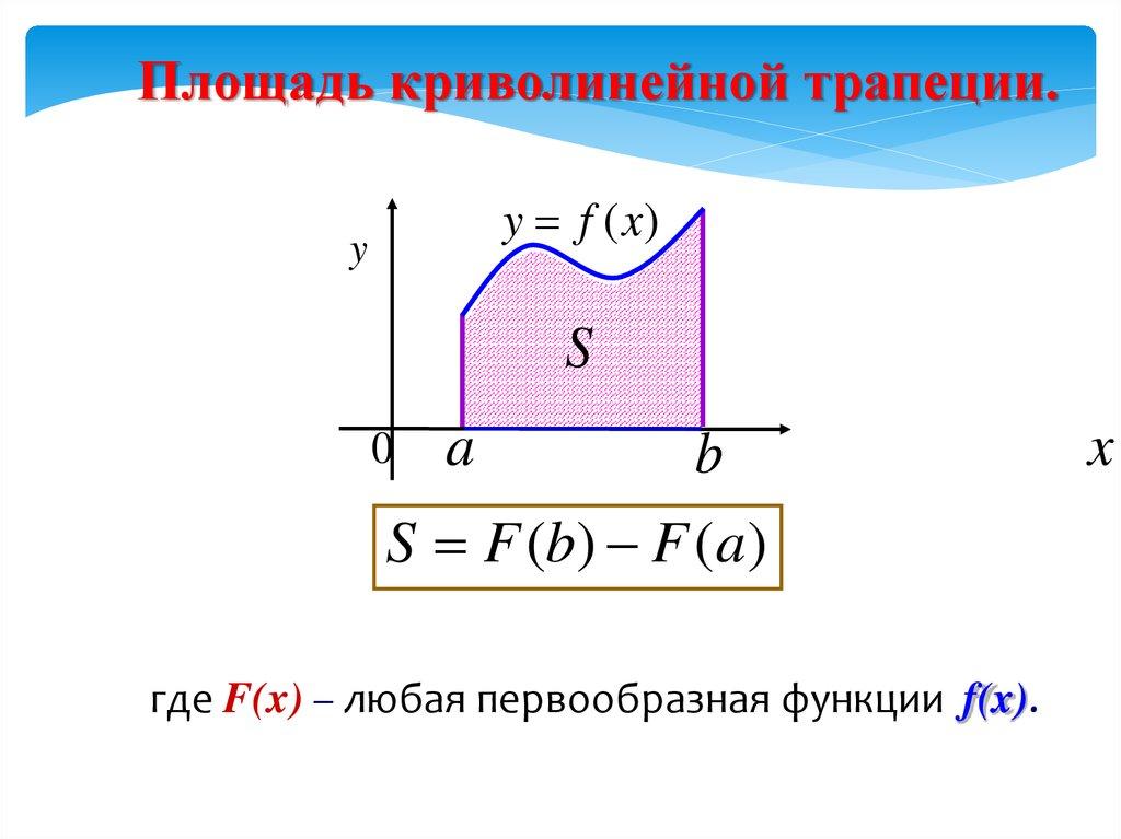 Формула Ньютона-ЛейбницаАлгоритм вычисления площади криволинейной