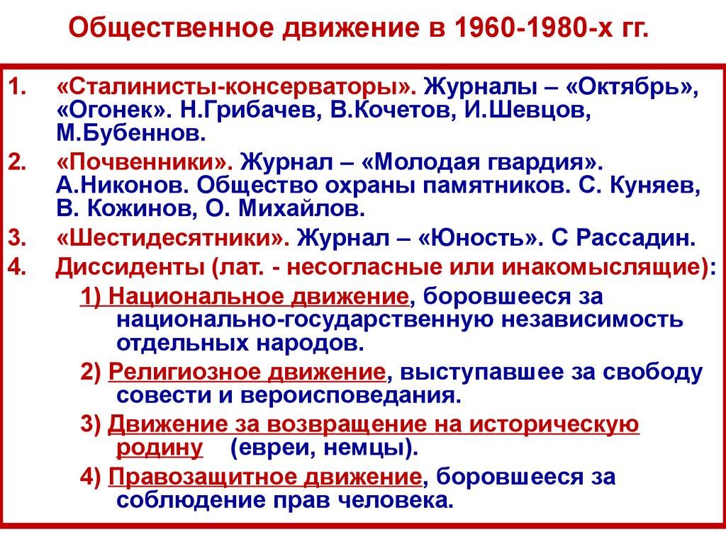 Характерные черты политической жизниСССР в 1960-1980-е гг.