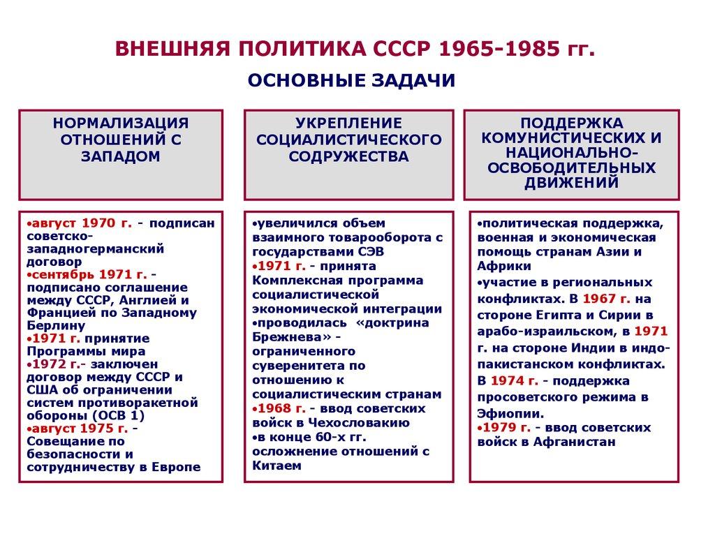 ВНЕШНЯЯ ПОЛИТИКА СССР 1965-1985 гг.ОСНОВНЫЕ ЗАДАЧИ