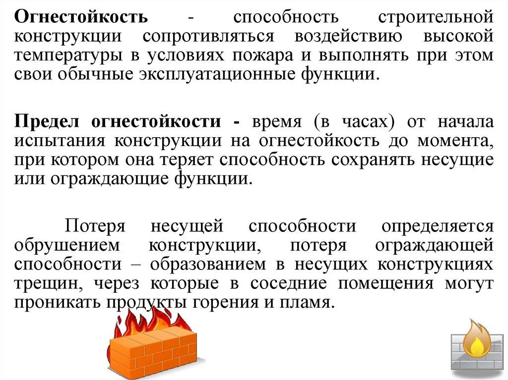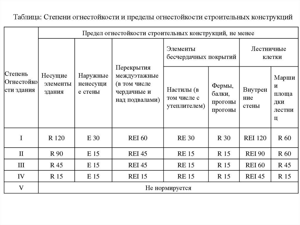 Таблица: Степени огнестойкости и пределы огнестойкости строительных конструкцийПредел огнестойкости строительных конструкций, не менее